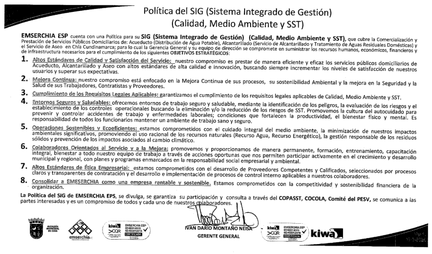 • Política Integrada del SIG – Emserchia